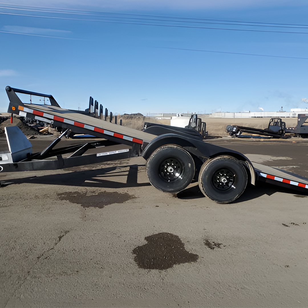 - “Flat deck trailer for hauling equipment in Saskatoon”
