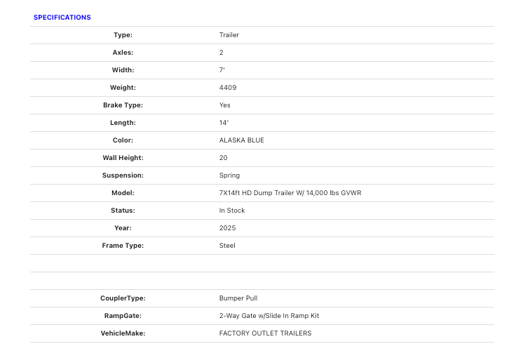 RENT - Dump Trailer Alaska Blue
