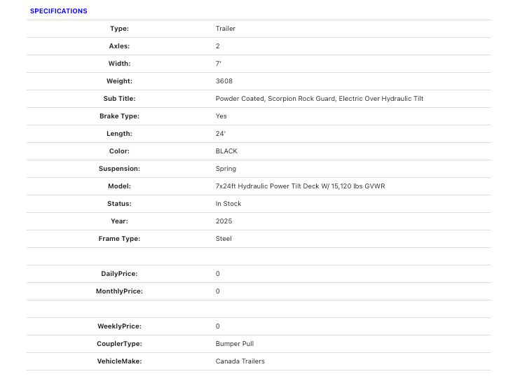 RENT - FlatDeck Trailer 7x24ft Hydraulic Power Tilt